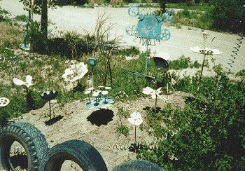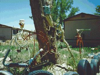 In the summer of 1995 I was traveling in southern Utah with my parents. My Mom spotted some dinosaur sculptures made out of junk in the parking lot of a roadside motel. "Look, there's something you would like!" We stopped to look at them, and much to my pleasure I could see that there were many more of these sculptures along a path winding around the back of an adjacent abandoned motel.